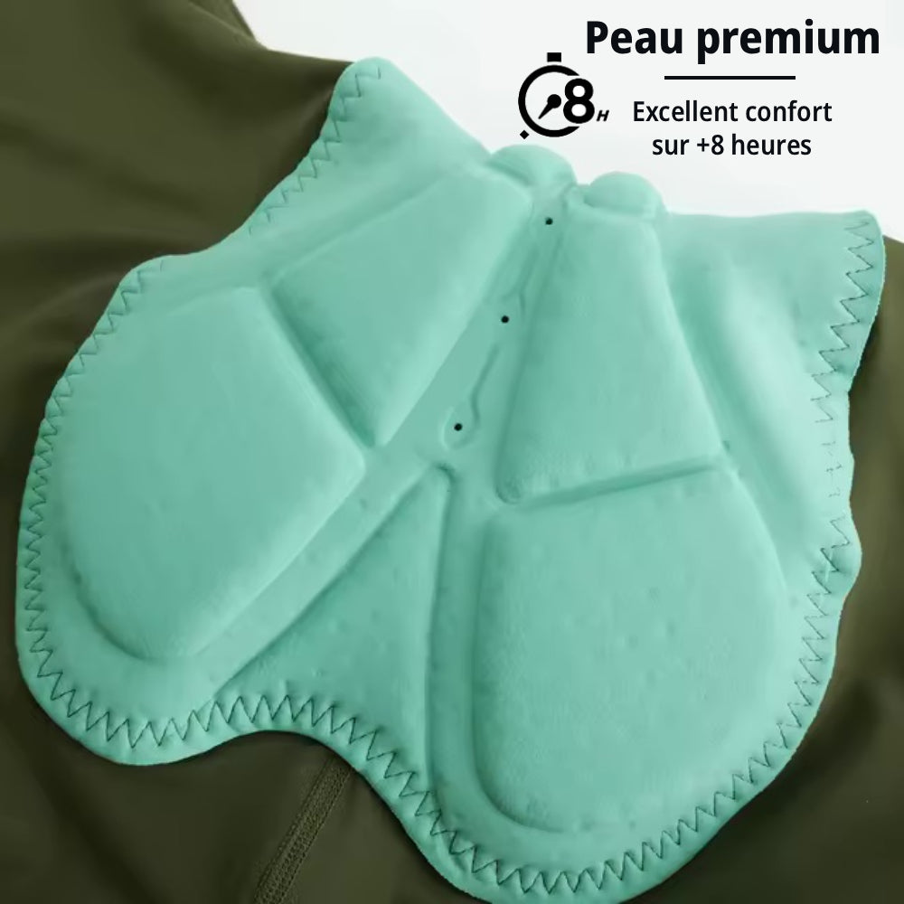 La peau de chamois conçue pour les longues distances offre un excellent maintien jusqu’à 8 heures en selle.